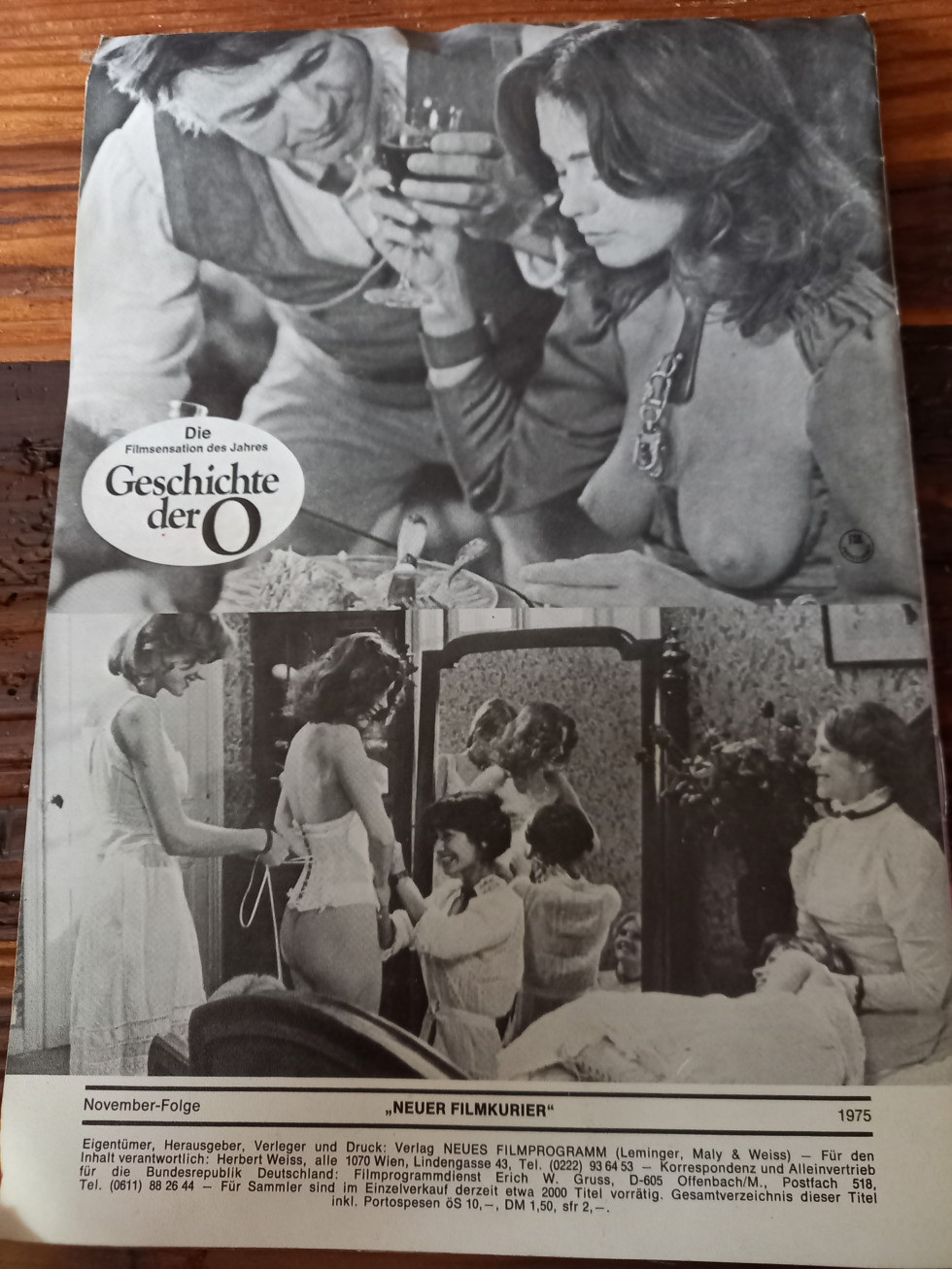 6 seitige Broschüre aus dem Jahr 1975 über den Film die Geschichte der O